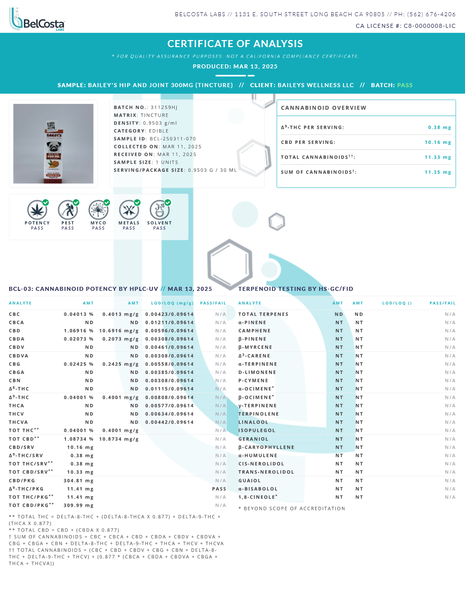 BAILEY'S CBD+TURMERIC DOG TINCTURE FOR HIP & JOINT