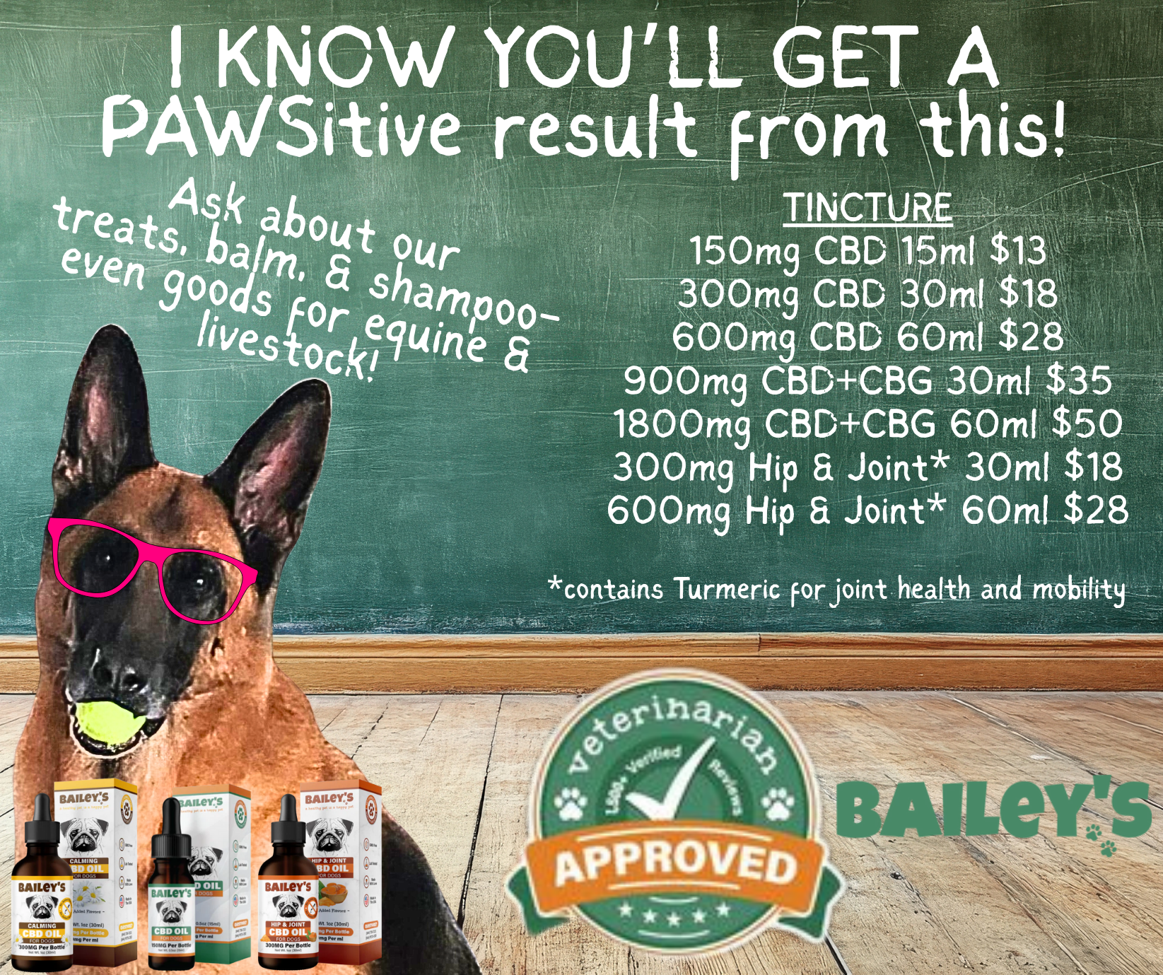 BAILEY'S CBD PET TINCTURE, CALMING, W/ CHAMOMILE + L-THEANINE