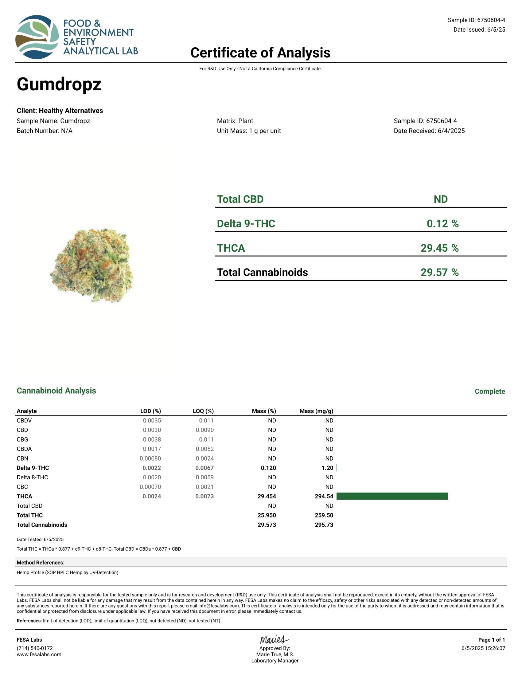 CLASSIFICATION: Hybrid THCA %: 29 GROW TYPE: Exotic