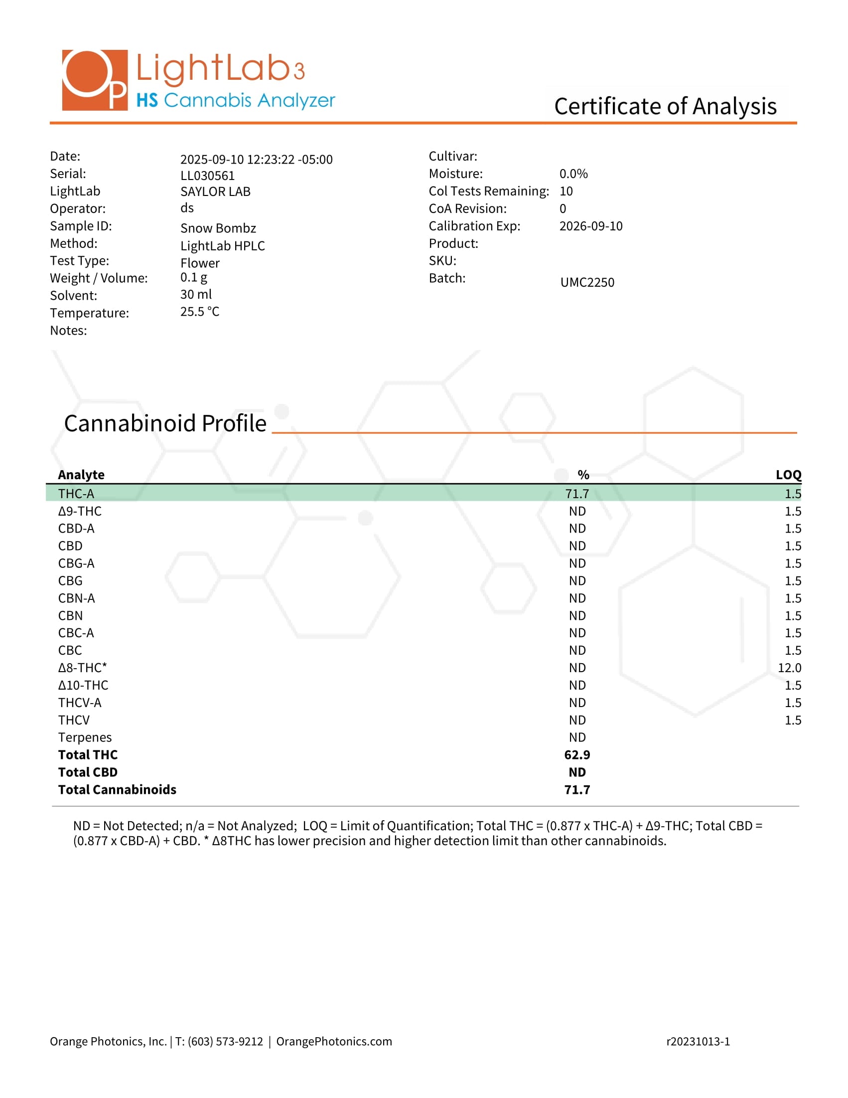 SNOWBOMBZ THCA FLOWER, BRANDED & JARRED